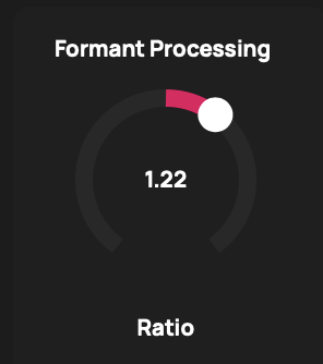 Formant Processing stretches or compresses the spectral envelope of a signal. A value of 1.0 means no alteration. Values greater than one create the impression of lengthening the vocalist’s vocal tract, creating a deeper, larger voice, while values below 1.0 create the impression of a shorter vocal tract, creating a thinner, smaller sound.