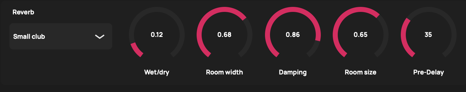 Changes the width of the virtual “room” that the reverb is modeled on. Higher values create more stereo spread in the output.