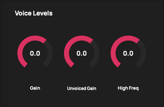 Unvoiced Gain is a separate gain applied only to unvoiced (not pitched) frames of audio. This parameter is important for avoiding excessive sibilance and noise when building multi-voice presets.